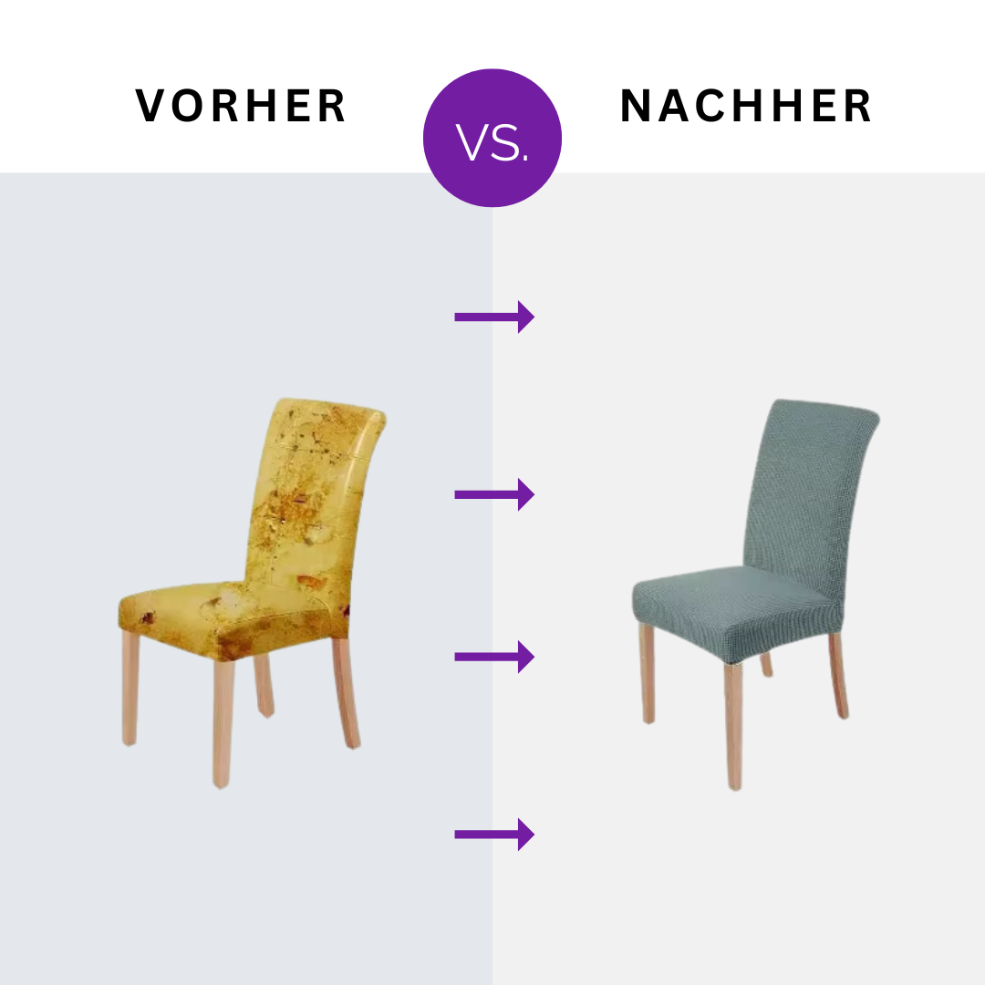 Say goodbye to stains! Do you have pets? Small children? Or are your chairs getting a bit old? With our unique chair covers, your chairs will now always look clean and like new and smell pleasantly good.